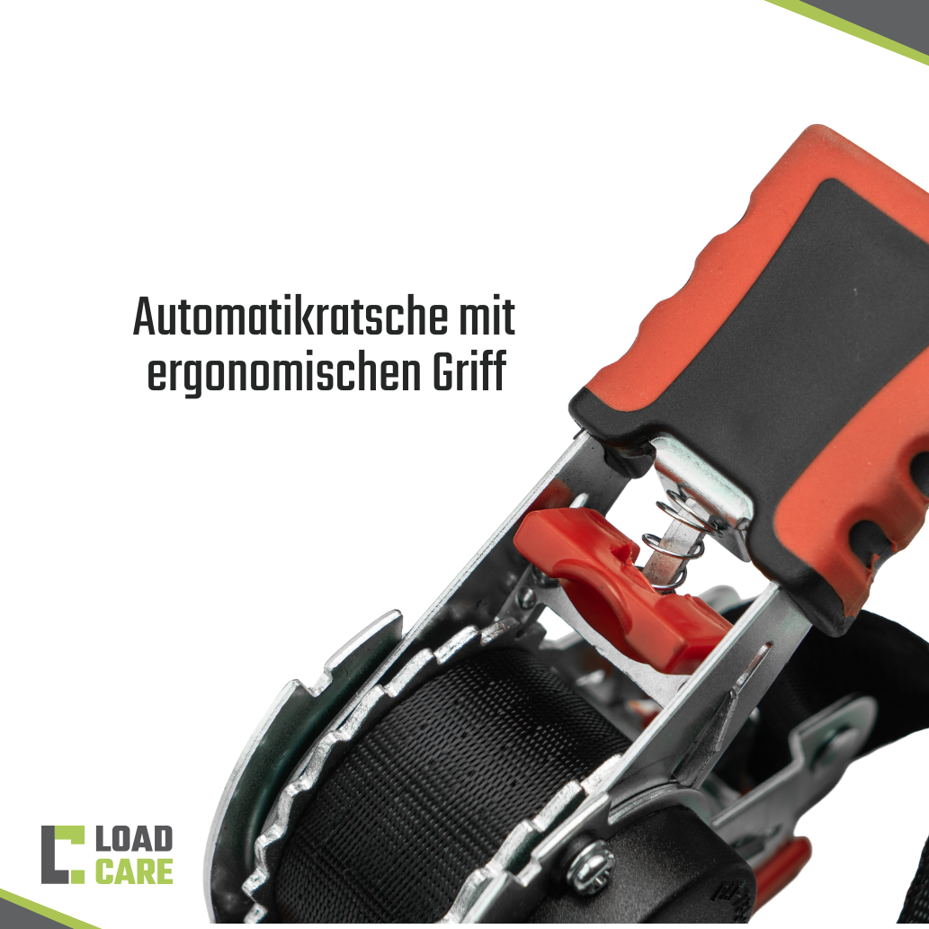 Mit nur wenigen Ratschenbewegungen lässt sich die Ladung zuverlässig fixieren. Das spart Zeit und sorgt für eine besonders komfortable Handhabung – ideal für den täglichen Einsatz im Fahrzeug, in der Werkstatt oder beim Transport von Gütern.
