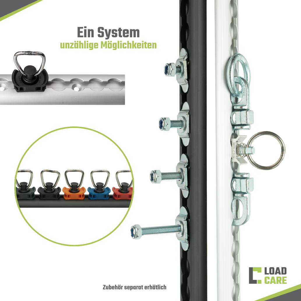 - Alles drin für deinen Start – Zwei hochwertige Airlineschienen (0,5 m, eloxiert, halbrund, gebohrt alle 10 cm) für professionelle Ladungssicherung – einfach auspacken und loslegen!