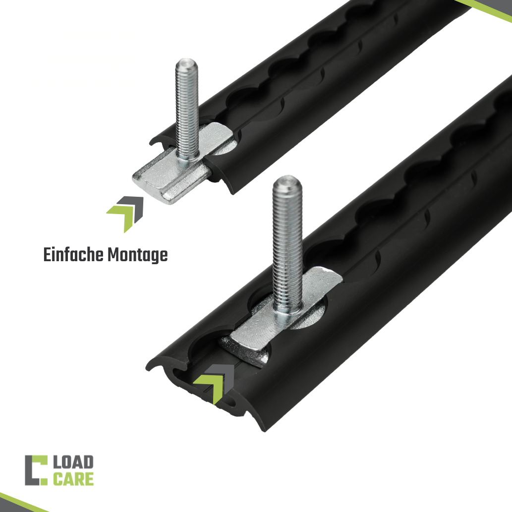 The advantage of the slot nut with 3x M6 thread is that it can be inserted and moved in the airline track at any time. The insertion is on the head side.