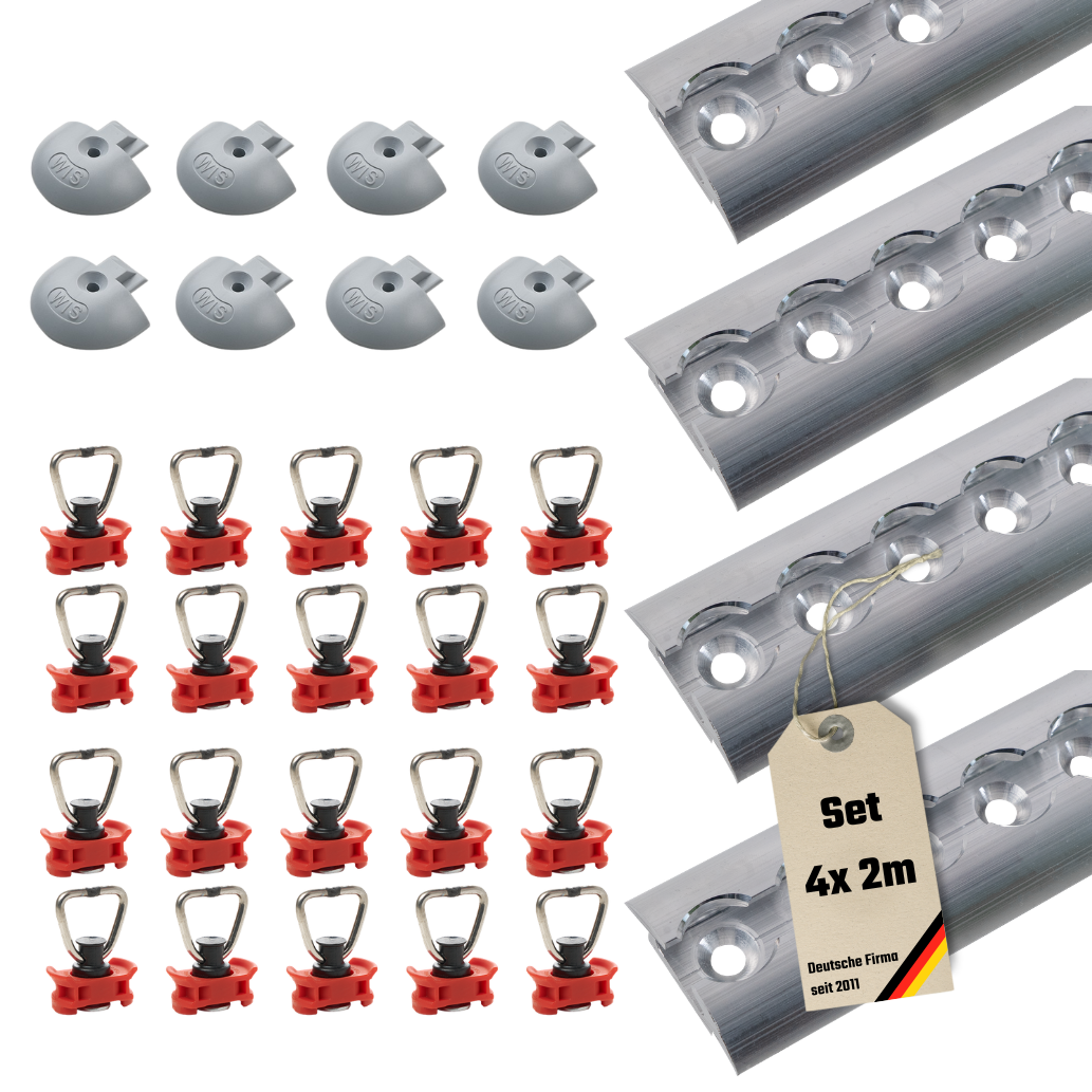 What is it that makes airline tracks so appealing? Of course! Low weight means more payload or the narrow hole pattern. This gives them the perfect form fit in combination with shoring beams, because they secure enormously close to the goods.