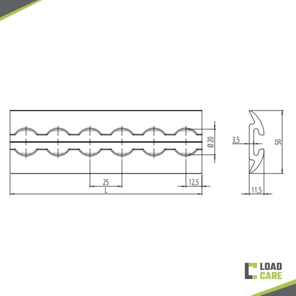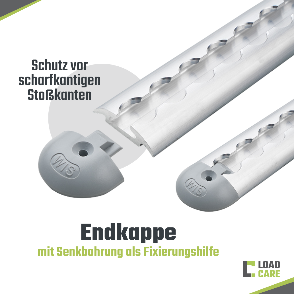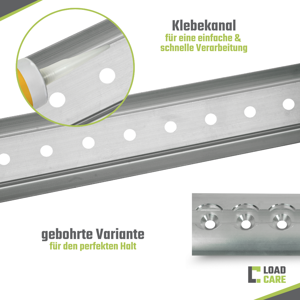 This track is the classic among the airline tracks. The rounded design protects you and the goods from sharp and pointed impact edges. In addition, there is a small groove in the track to help you find the centre of the lashing track when drilling. You save a lot of time as punch-marking is not needed.