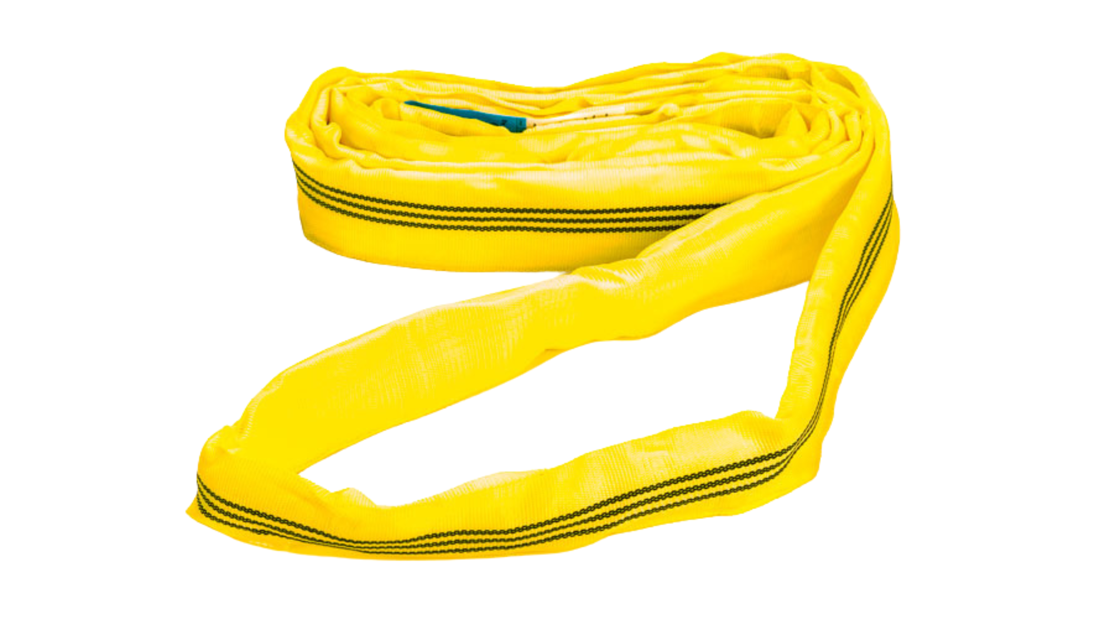 Practical yellow round sling made of polyester with a circumferential length of 4 m and a useful length of 2 m.