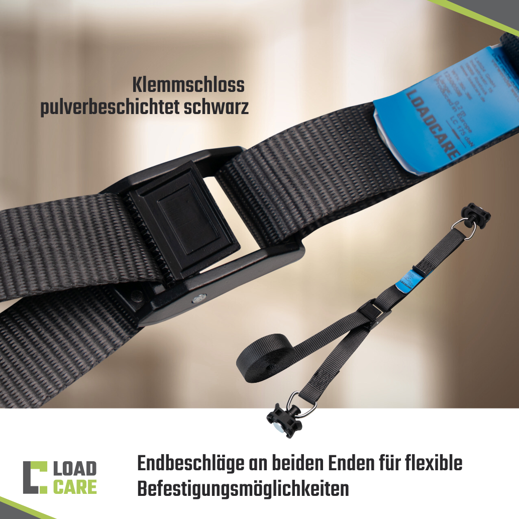 LoadCare 2tlg Spanngurt mit Klemmschloss und Fittingen für Airlineschienen 175 daN
