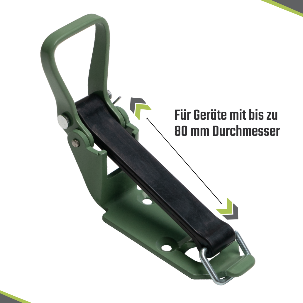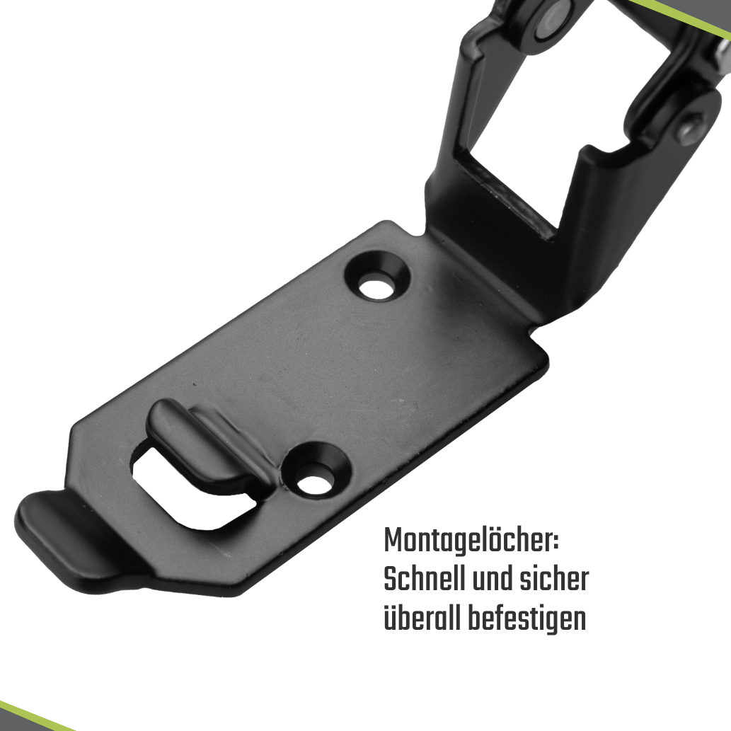 Gefertigt aus verzinktem Stahl in Kombination mit hochwertigem, widerstandsfähigem Gummi, ist der LoadCare Werkzeughalter besonders langlebig, rostbeständig und wetterfest – optimal für den dauerhaften Einsatz im Außenbereich. - Schnelle & einfache Installation